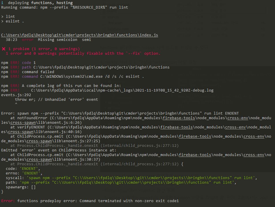 3. functions predeploy error: Command terminated with non-zero exit code1 에러