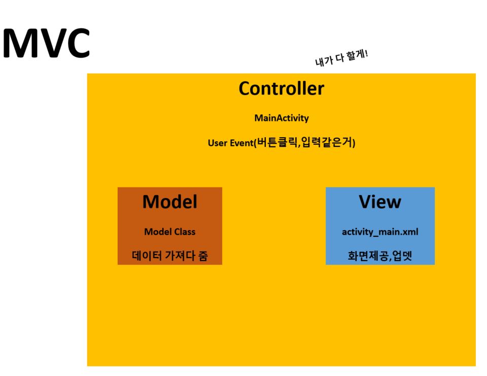 처음에 정말 헷갈리는게 MVC만 C가 Controller로써 쓰이고 이것은 Activity같은 곳의 코드를 의미하는 데 (controller의 의미로써),